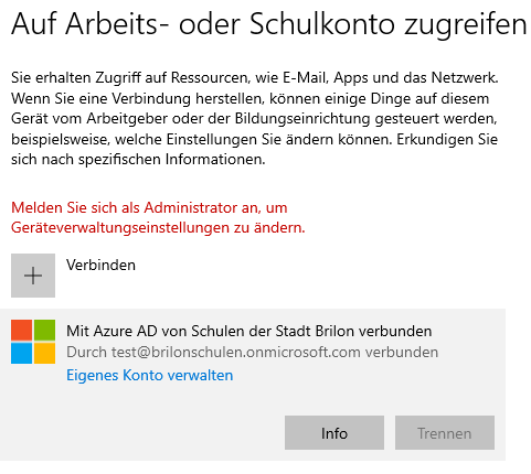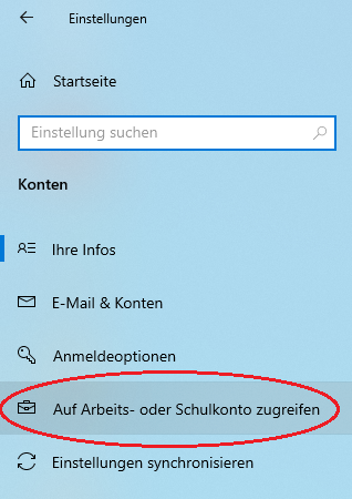 - Klicken Sie im linken Menüband auf „Auf Arbeits- oder Schulkonto zugreifen“